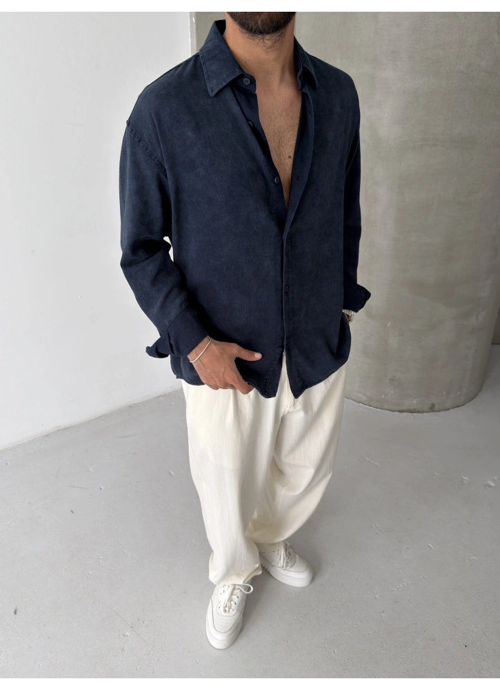 Lacivert Yıkamalı Oversize Viskon Gömlek Hakkında