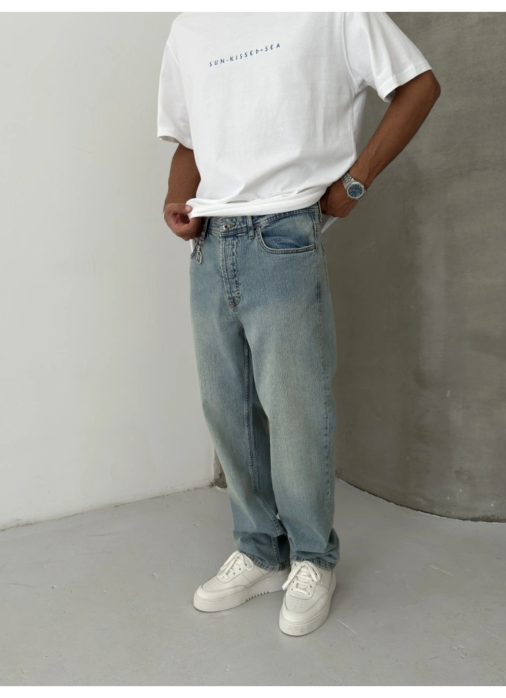 Açık mavi yıkamalı tonu ve dikkat çeken metal aksesuar detayıyla öne çıkan bu süper baggy jean, ekstra bol kalıbıyla maksimum konfor sunar. Modern street style çizgisi ve dinamik tasarımıyla kombinlerine cool, özgün ve stil sahibi bir hava katar.