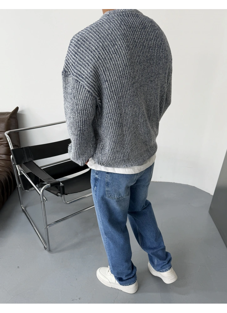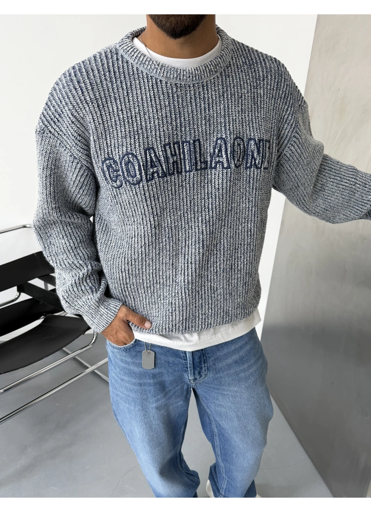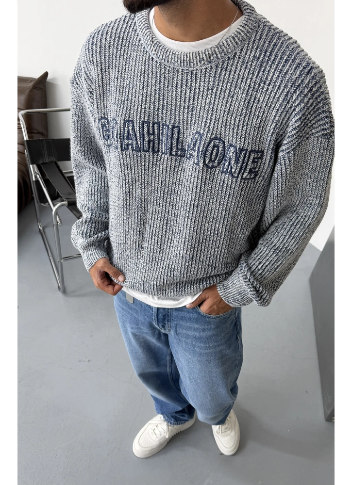 Mavi Baskı Detay Örme Oversize Triko Kazak Hakkında