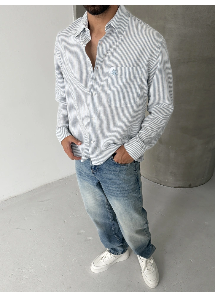 Mavi Çizgili Keten Oversize Gömlek Hakkında
