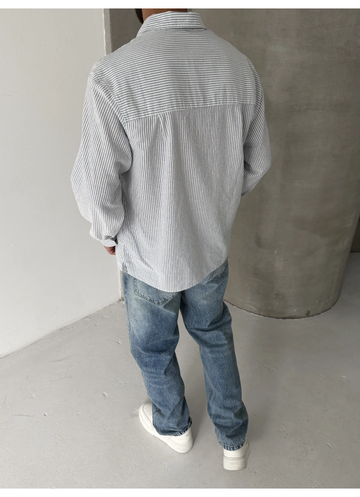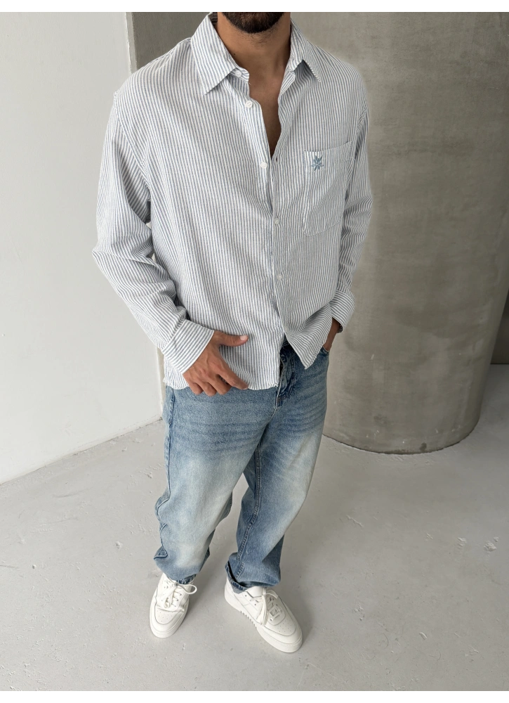 Mavi Çizgili Keten Oversize Gömlek