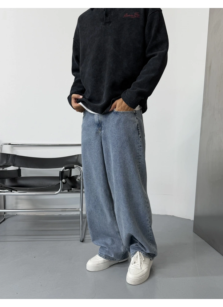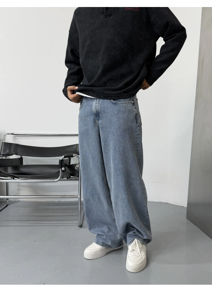 Ekstra bol baggy kesimi ve yumuşak dokusu ile rahat ve modern bir görünüm sunar. Günlük stilinize sokak modası dokunuşu katarken konforu da korur. Mavi tonuyla çok yönlü kombin kolaylığı sağlar.