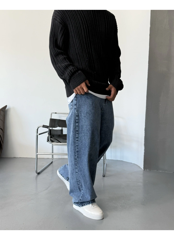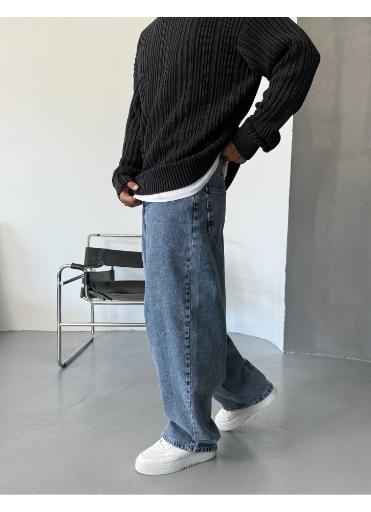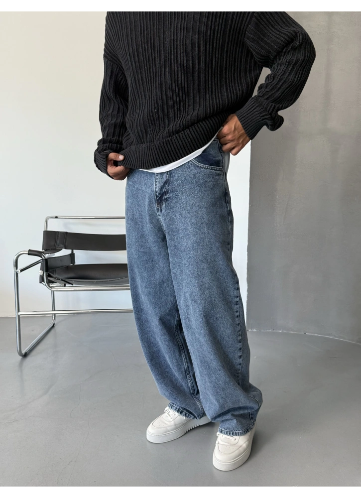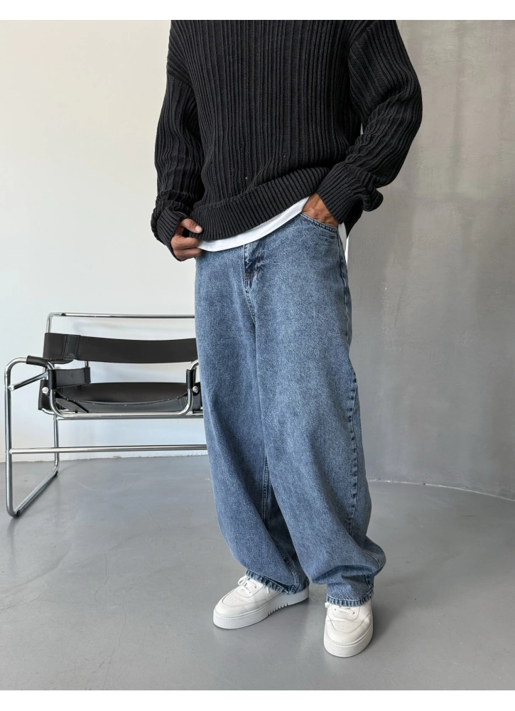 Geniş kalıbıyla maksimum rahatlık sunan mavi eskitme ekstra bol baggy jean, modern yıkama detayıyla özgün bir tarz yaratır. Günlük kombinlerde hem konfor hem de sokak stiline cool bir dokunuş katar.