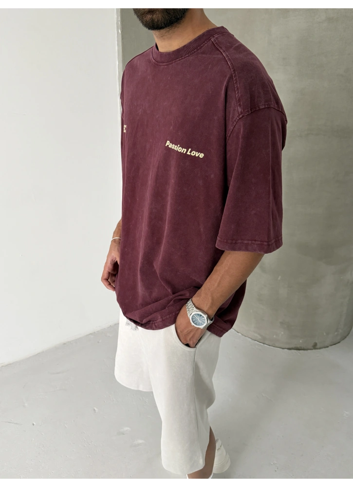 Passion Bordo Yıkamalı Oversize T-Shirt