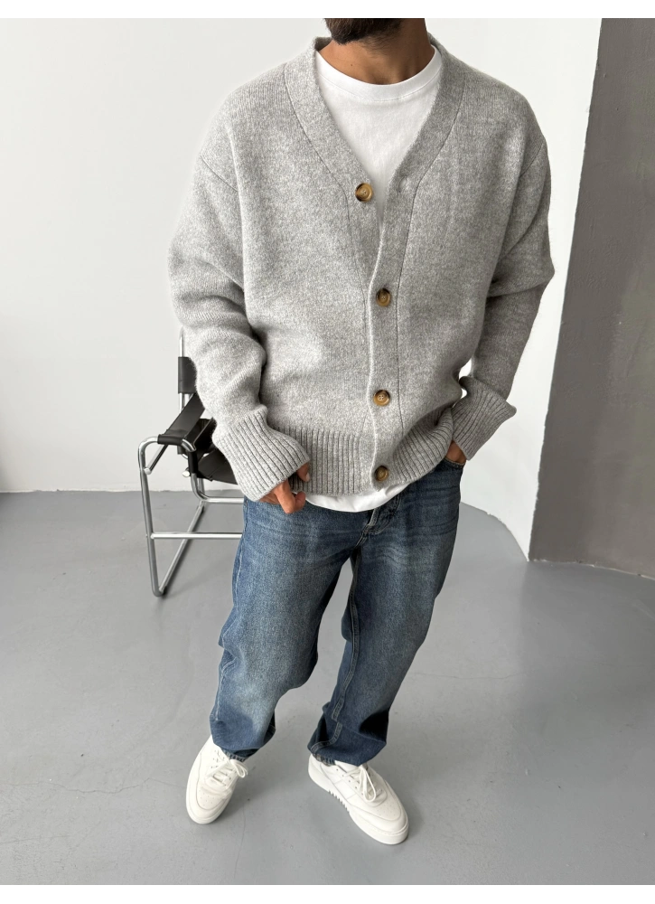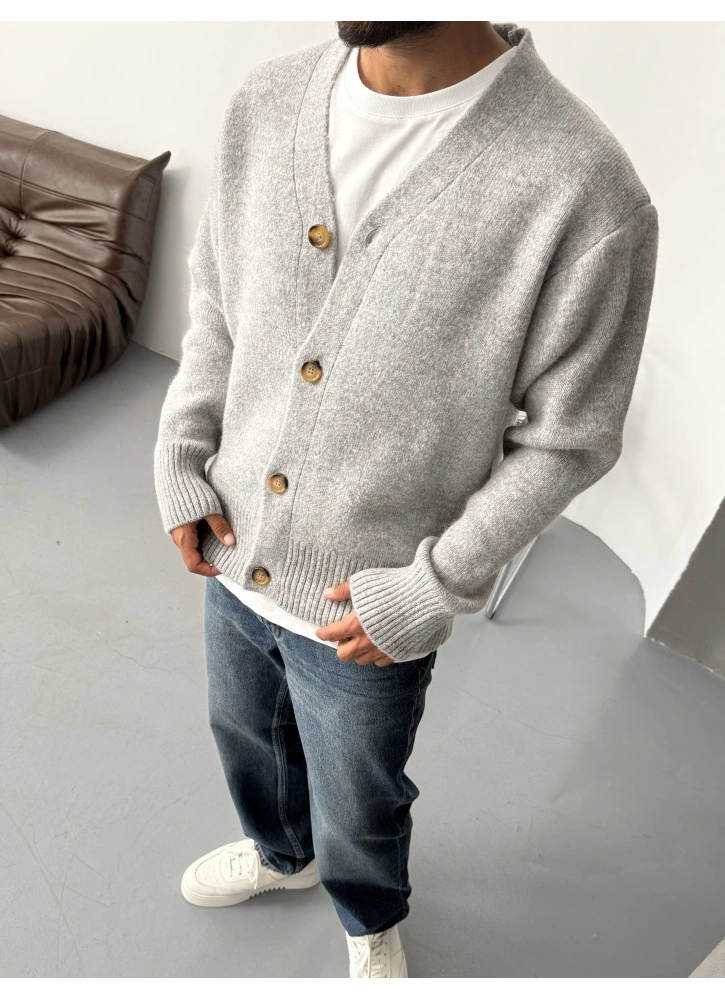 Premium Gri Düğmeli Triko Hırka Hakkında