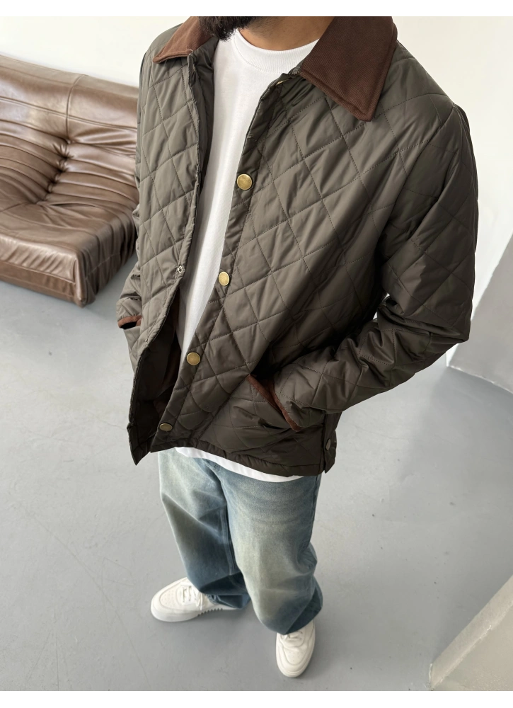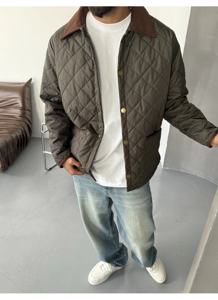 Şık kapitone dokusu ve haki yaka detayıyla güçlü ve modern bir kış parçası. Hafif dolgusu sayesinde sıcak tutar, düğmeli tasarımıyla zamansız bir stil sunar.
