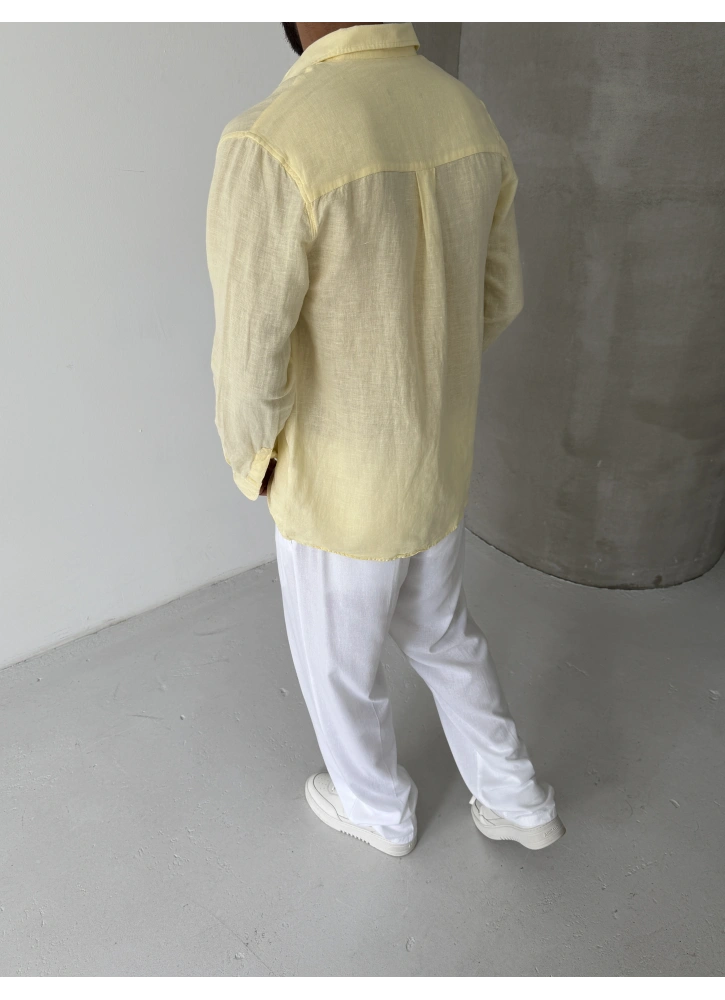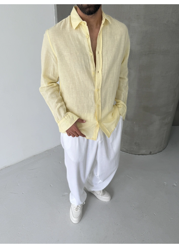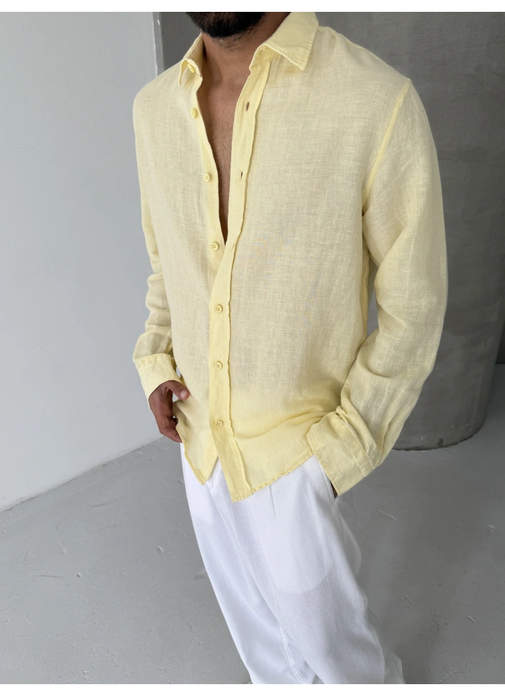 %100 keten kumaşıyla hafif ve nefes alabilen yapıya sahip bu gömlek, sarı rengiyle enerjik ve ferah bir görünüm sunar. Rahat kesimi sayesinde gün boyu konfor sağlarken, yaz kombinlerine şık ve stil sahibi bir dokunuş katar.