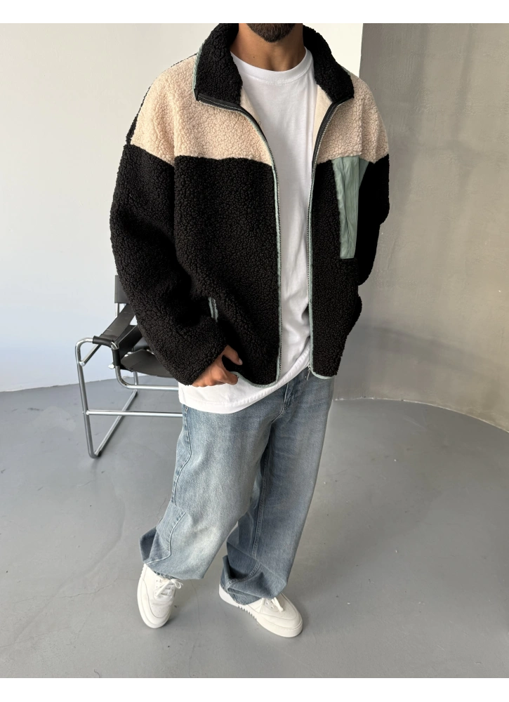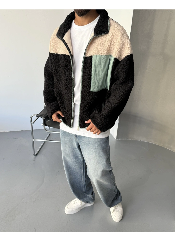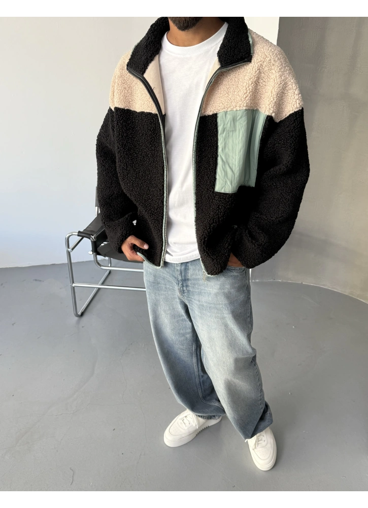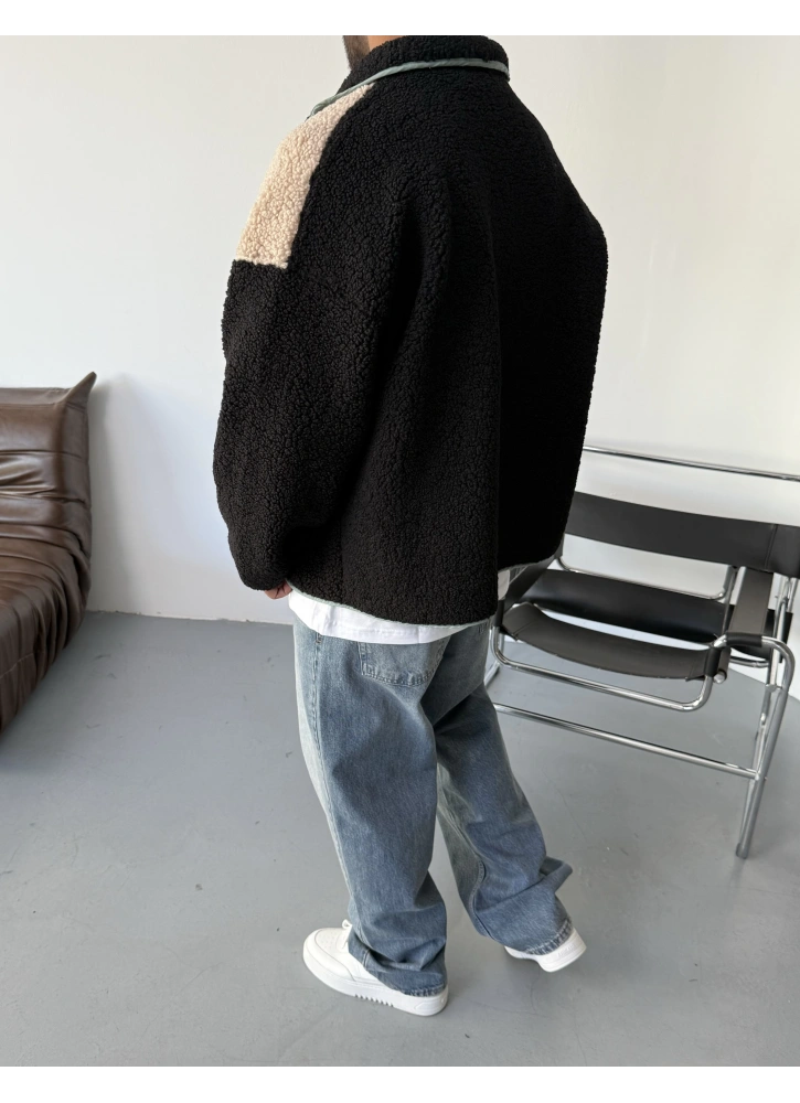 Siyah Blok Detay Oversize Peluş Ceket Hakkında