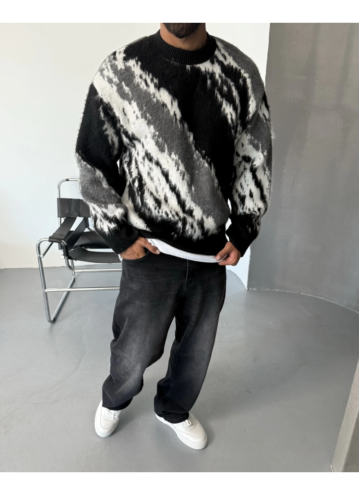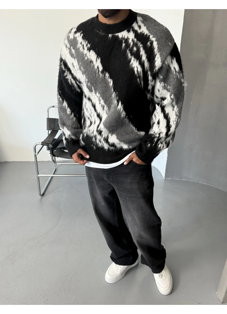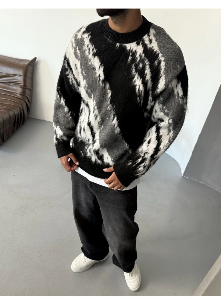 Siyah Desenli Oversize Triko Kazak Hakkında