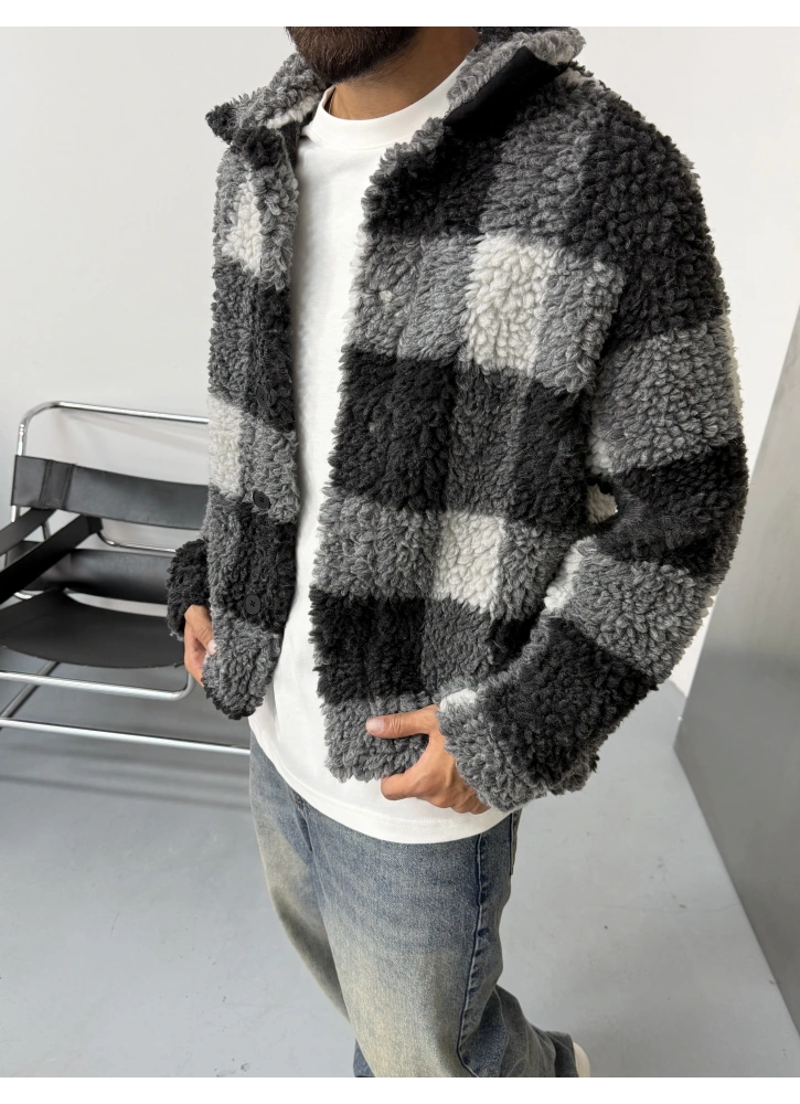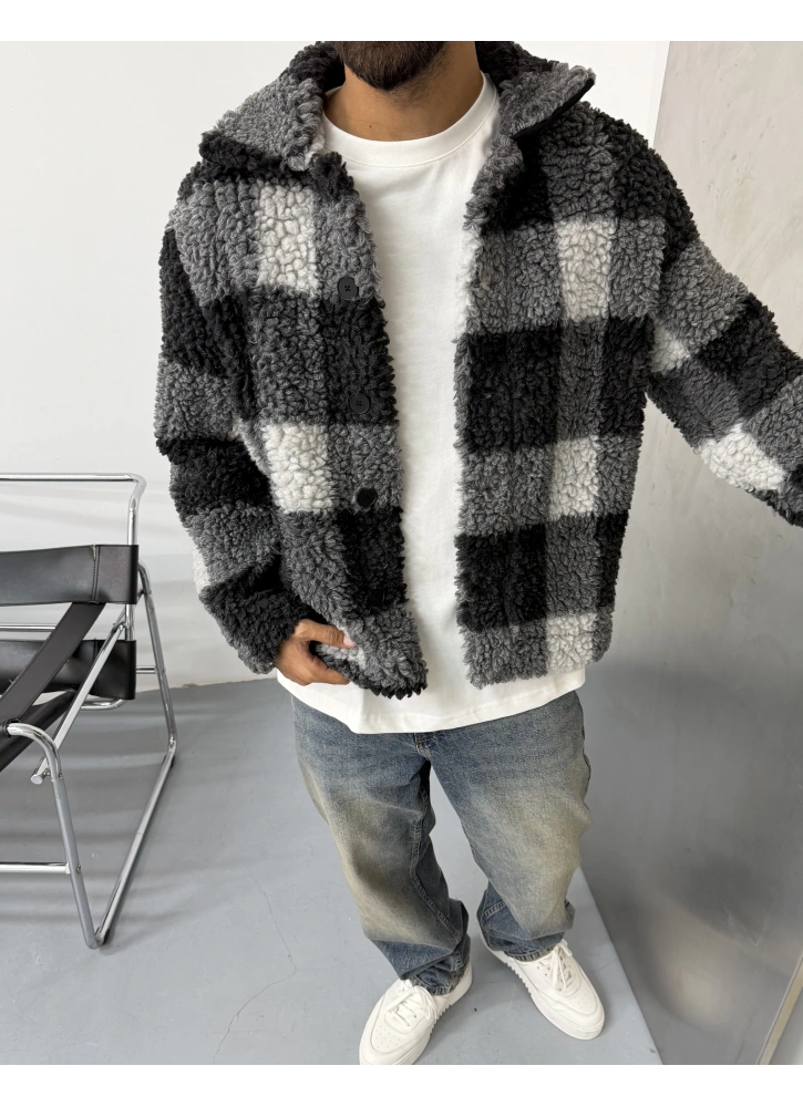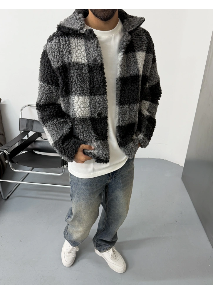 Siyah Ekose Oversize Peluş Ceket Hakkında