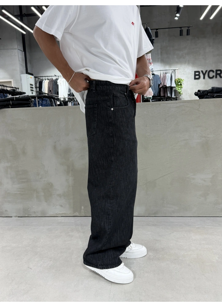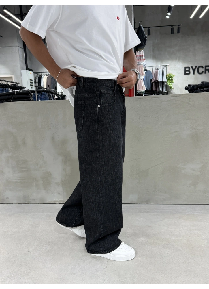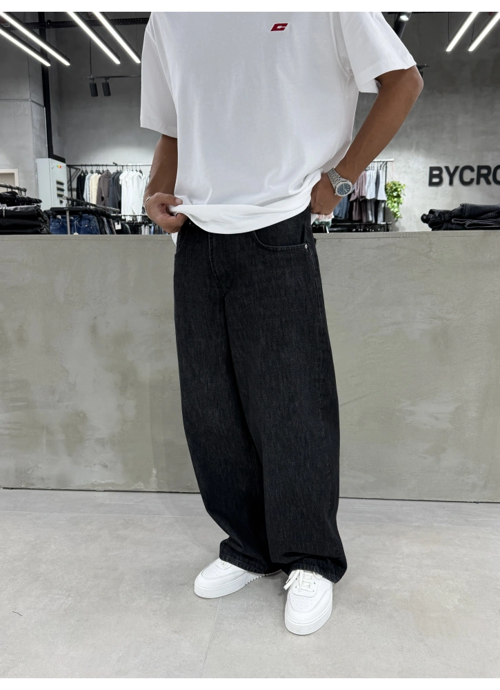 Siyah Eskitme Denim Süper Baggy