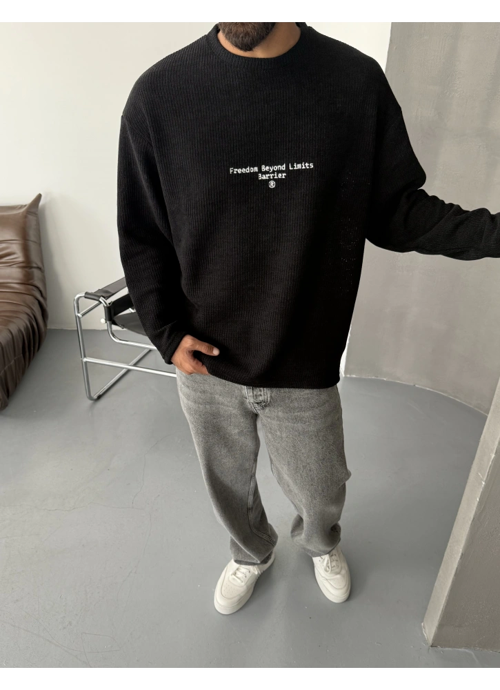 Siyah Freedom Baskılı Oversize Kazak Hakkında