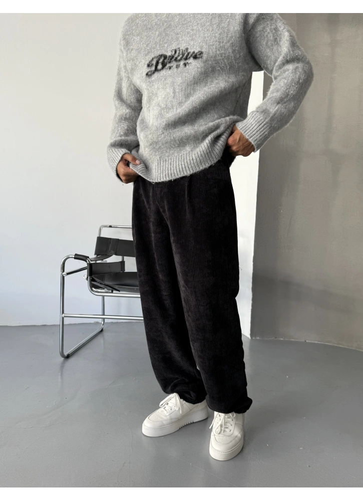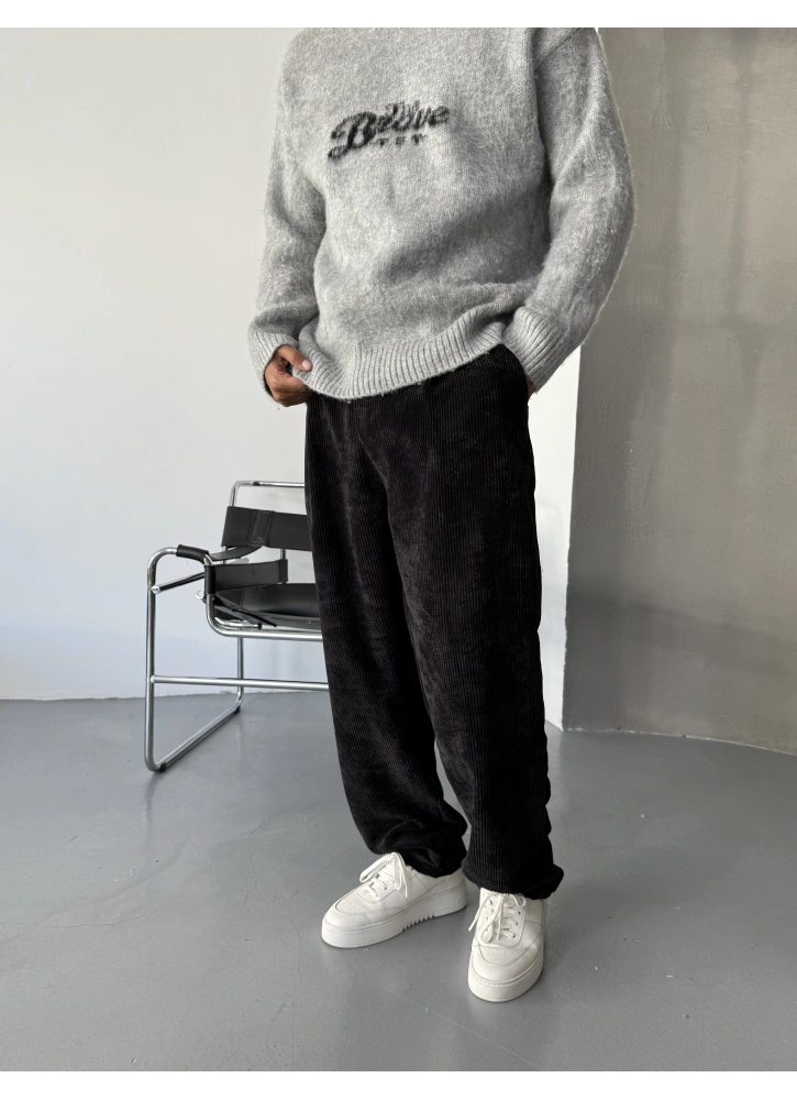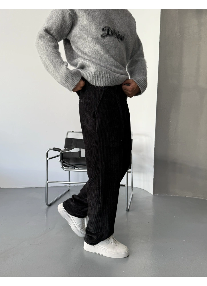 Siyah Kadife Kumaş Bol Kalıp Baggy