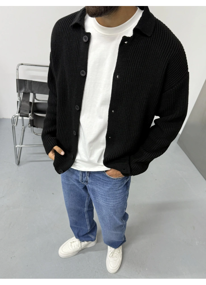 Siyah Örme Düğmeli Oversize Hırka Hakkında