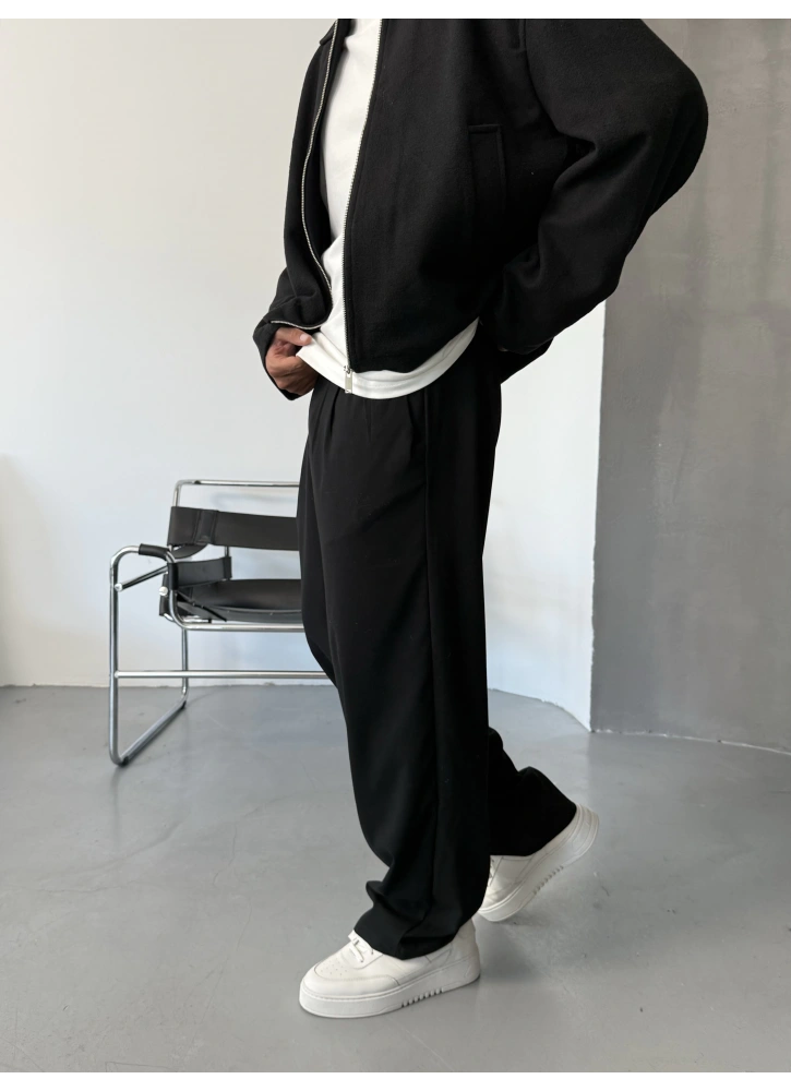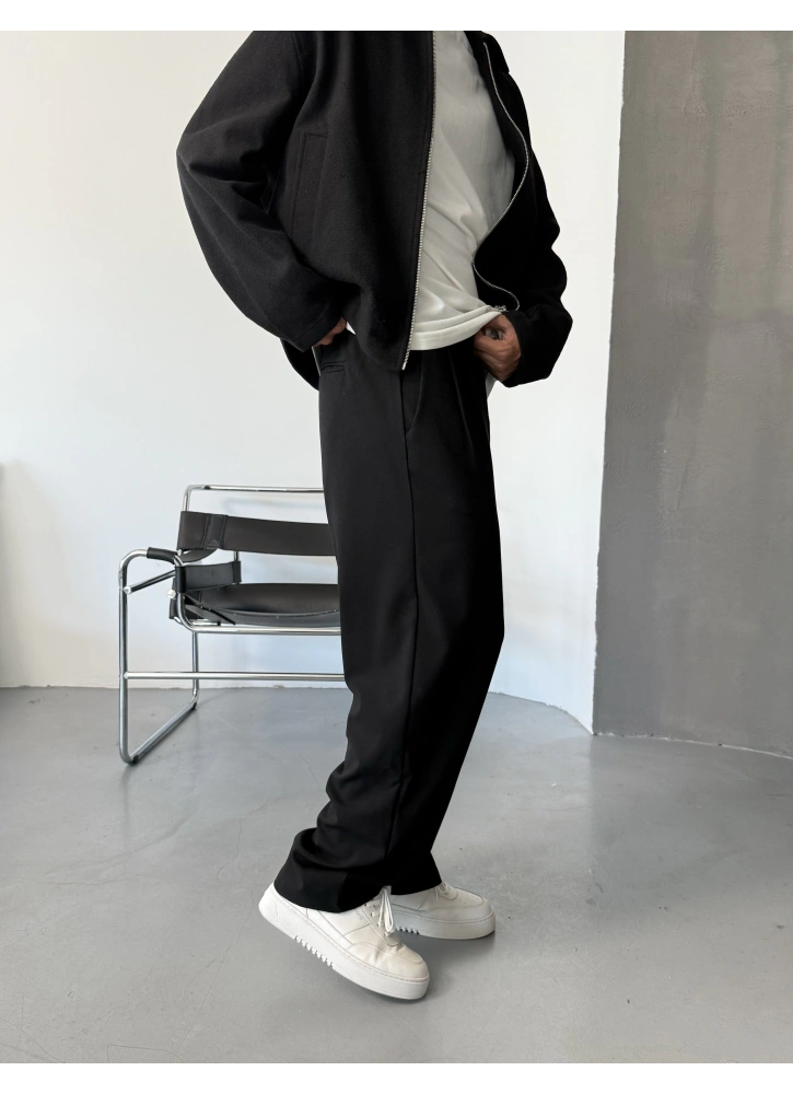 Siyah Pileli Kumaş Bol Kalıp Baggy Hakkında