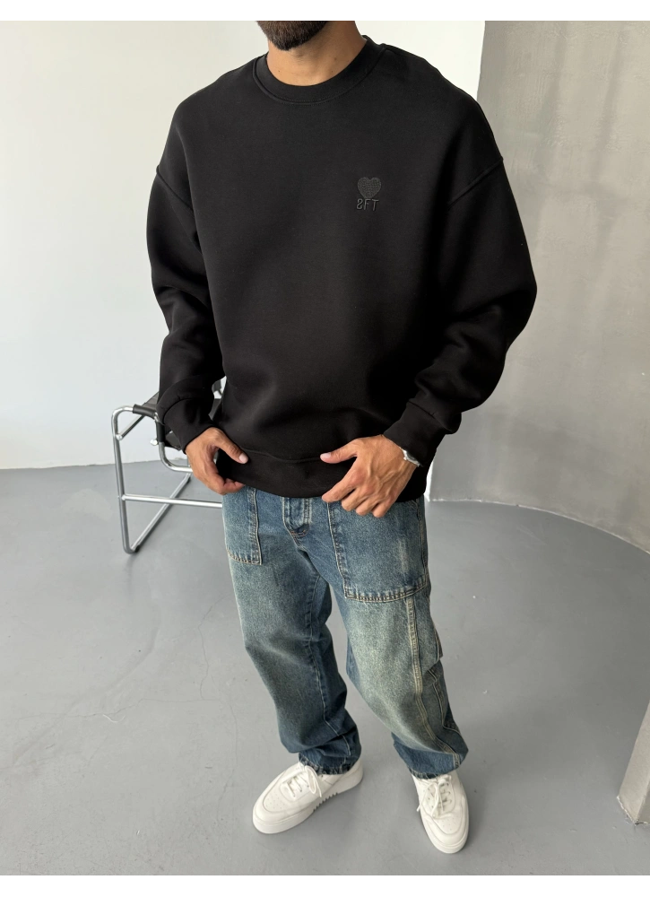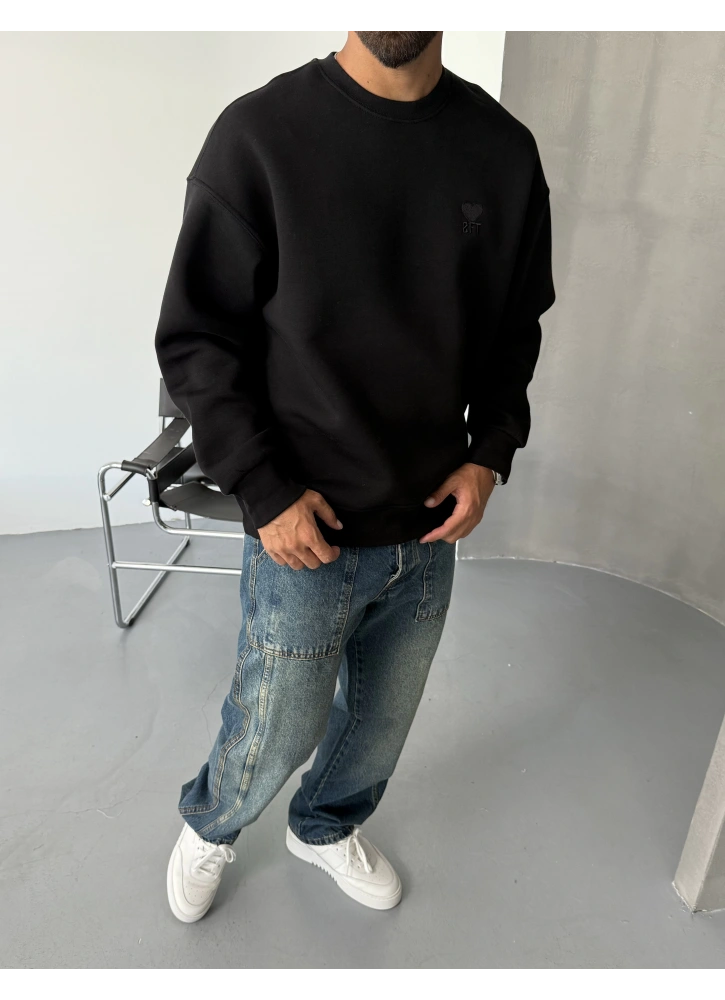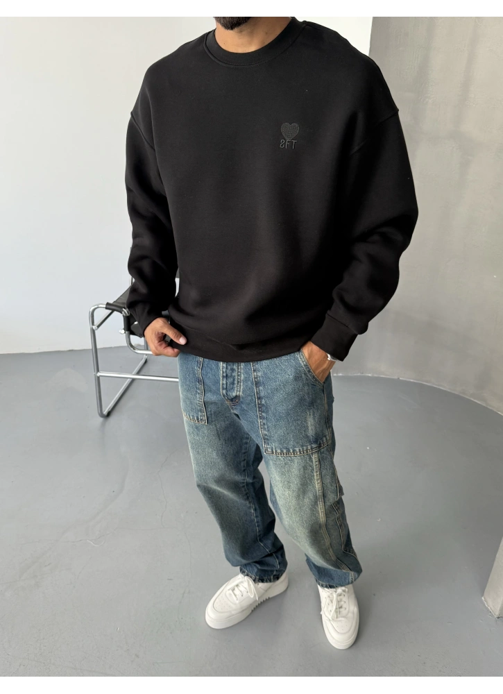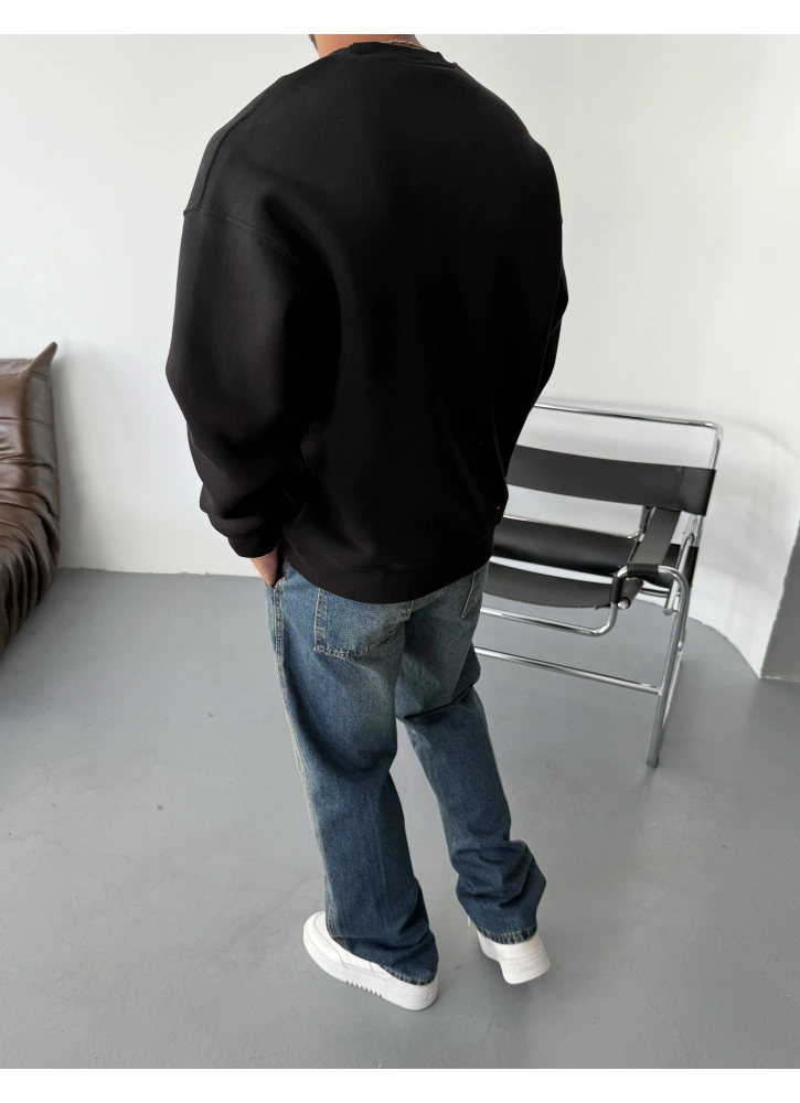 Siyah Premium Bisiklet Yaka Sweatshirt