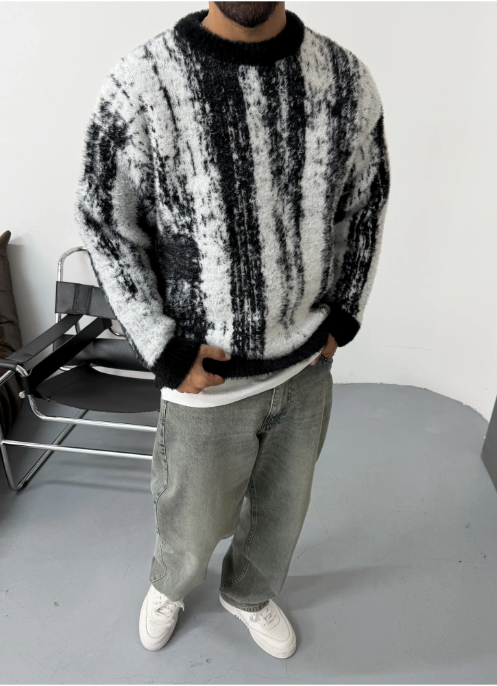 Siyah Premium Desenli Oversize Kazak Hakkında