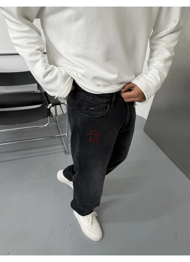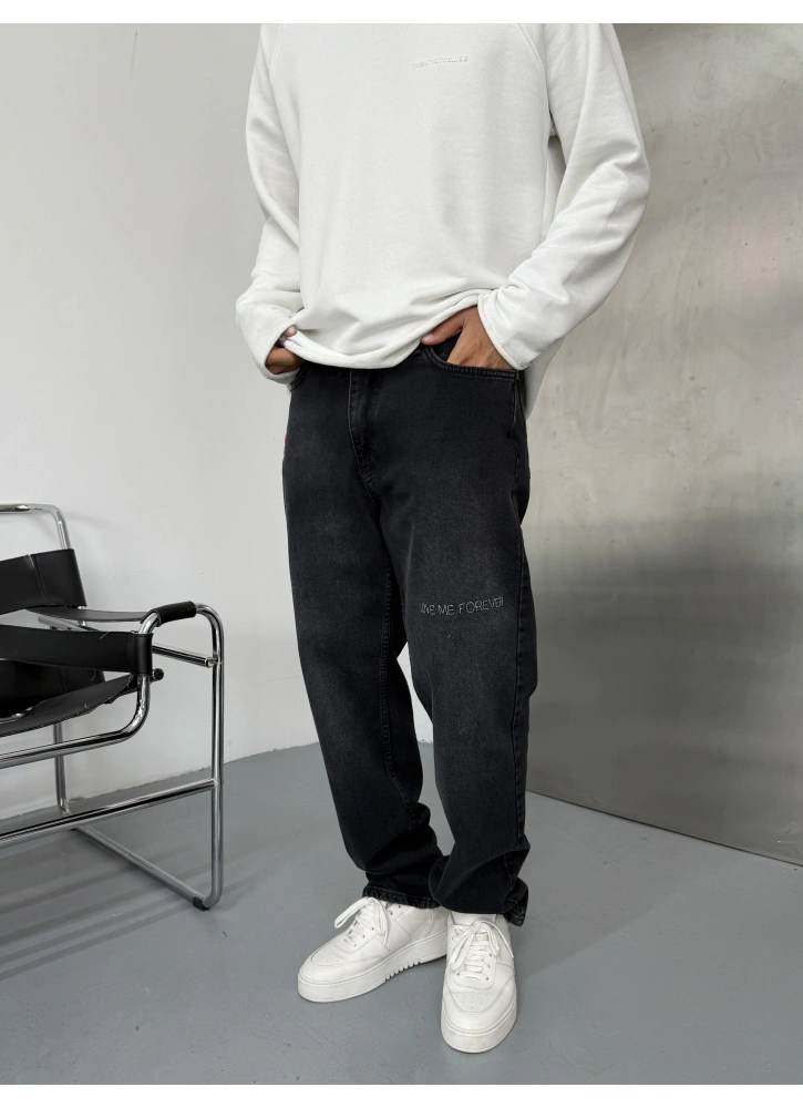 Siyah Premium İşlemeli Bol Kalıp Baggy Jean Hakkında