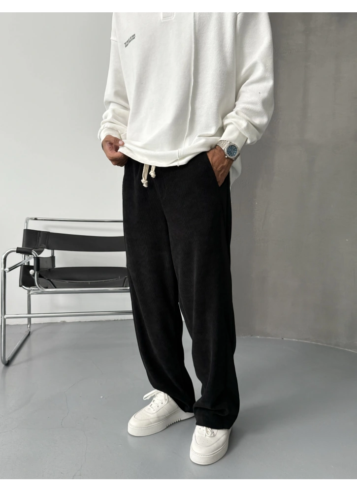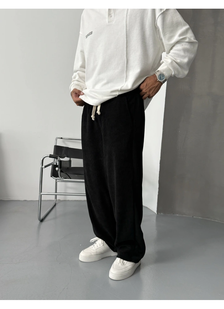 Sokak modasının vazgeçilmezi: Siyah Şerit Bol Kalıp Baggy Eşofman.