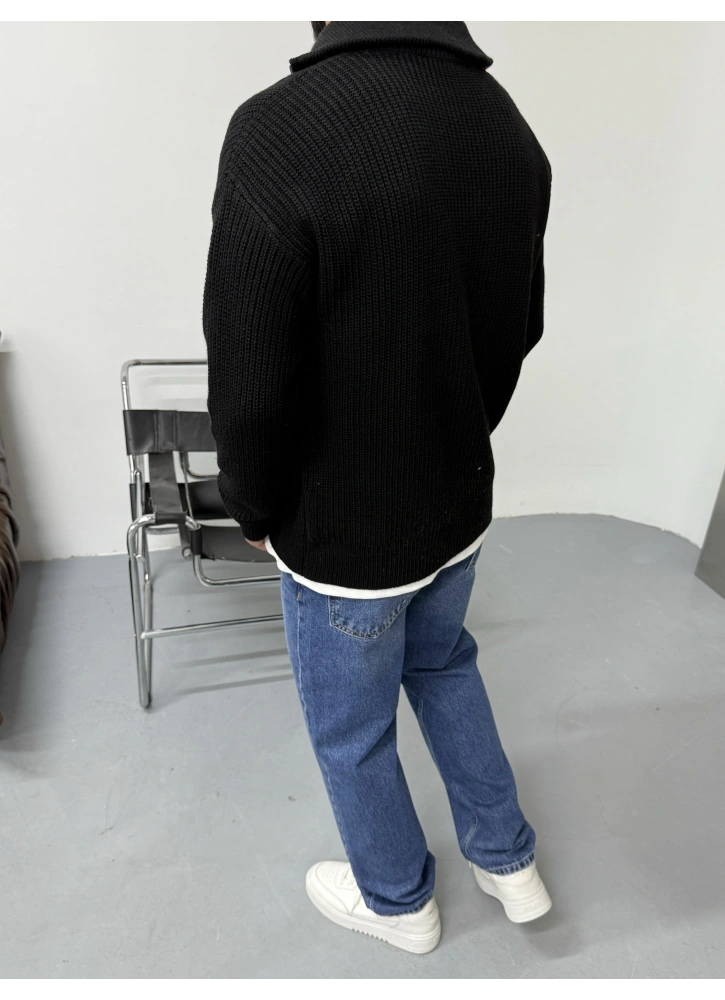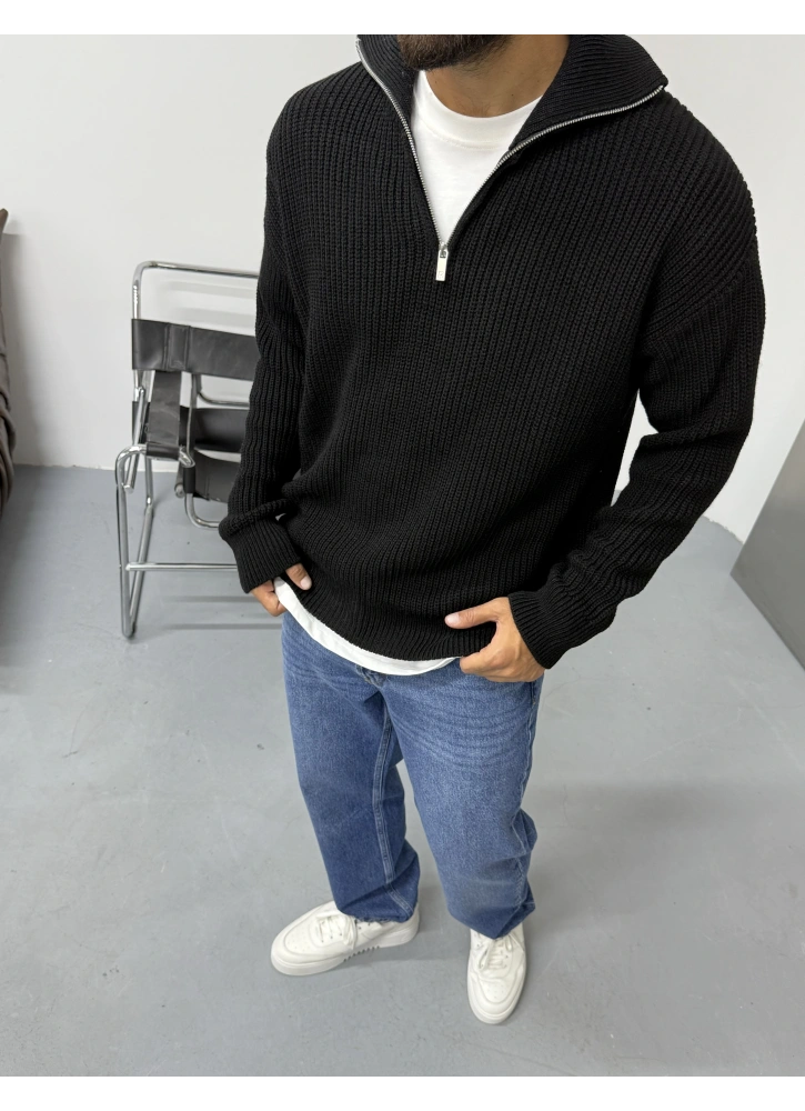 Siyah Yarım Fermuar Oversize Triko Kazak Hakkında