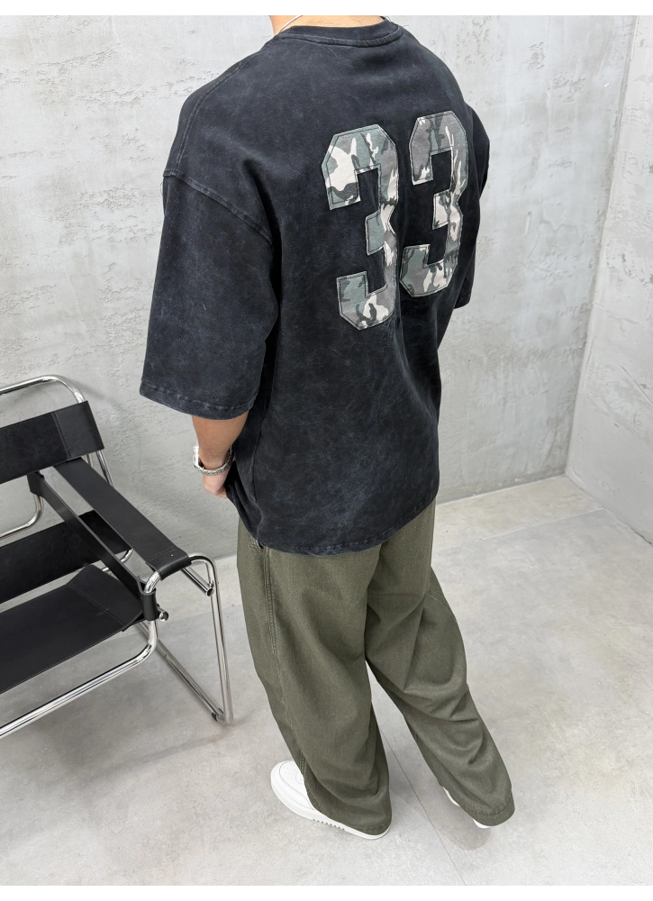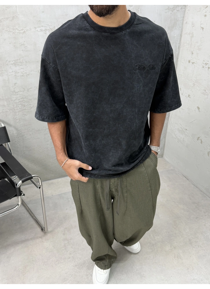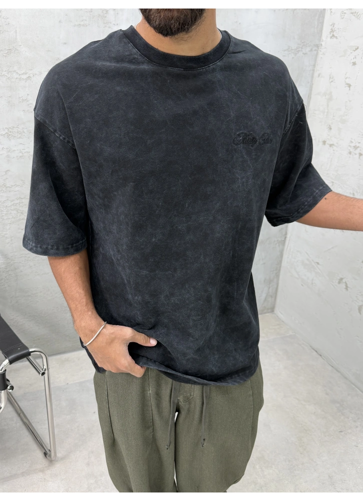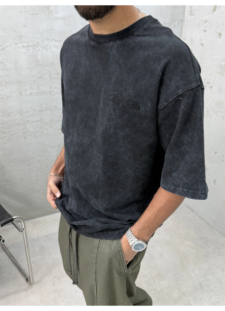 Siyah Yıkamalı 33 İşlemeli Oversize T-Shirt Hakkında