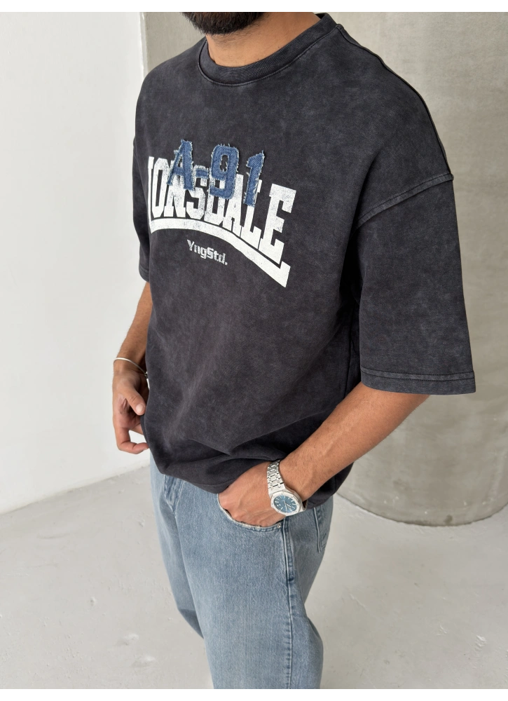 Siyah yıkamalı dokusu ve dikkat çeken “A-91” detayıyla öne çıkan bu oversize t-shirt, geniş kesimi sayesinde gün boyu rahat bir kullanım sunar. Yıkamalı siyah tonu sayesinde her parçayla kolayca uyum sağlar ve kombinlerine modern, sokak stilinden ilham alan güçlü bir hava katar.