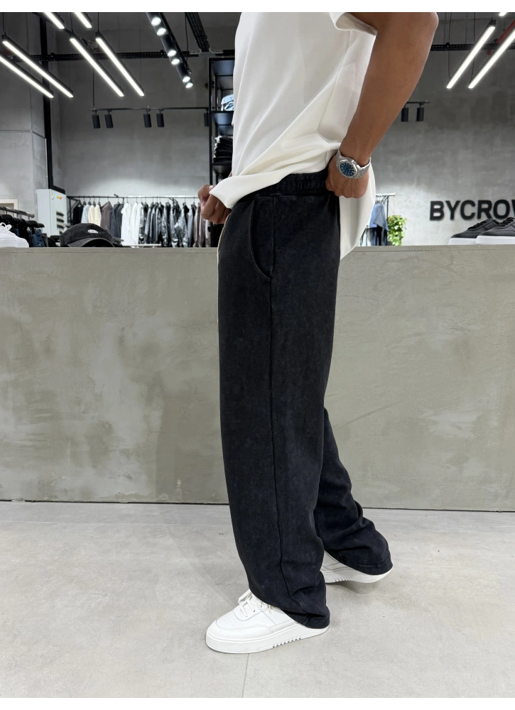 Siyah Yıkamalı Comfort Bol Kalıp Eşofman
