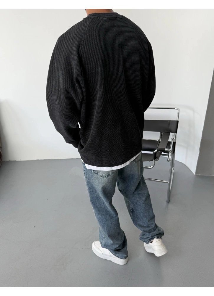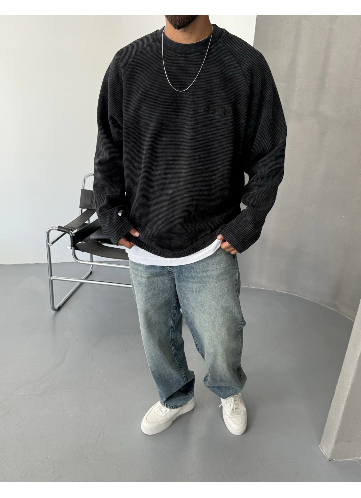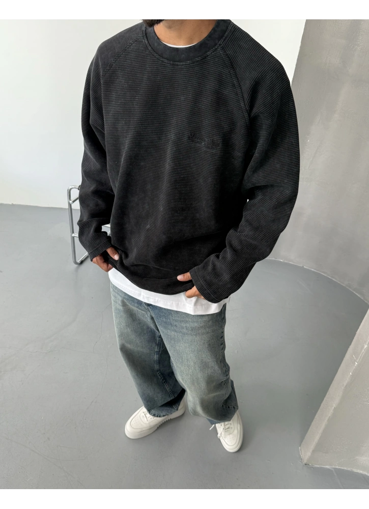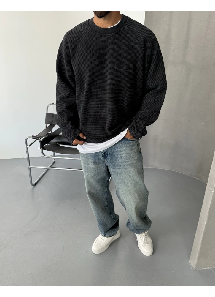 Siyah Yıkamalı Gofre Kumaş Sweatshirt Hakkında