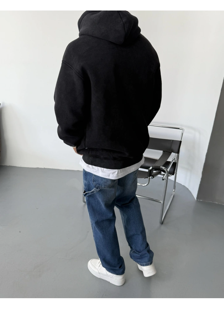 Şıklığı ve konforu bir araya getiren bu oversize kapüşonlu sweat, %100 pamuk kumaşıyla nefes alabilen ve gün boyu rahat kullanım sağlar. Siyah yıkamalı özel tasarımı, sokak stiline modern bir hava katarken oversize kalıbı özgür bir duruş sunar.