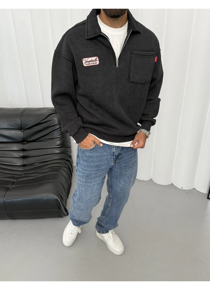 Siyah Yıkamalı Yarım Fermuar Oversize Sweat Hakkında