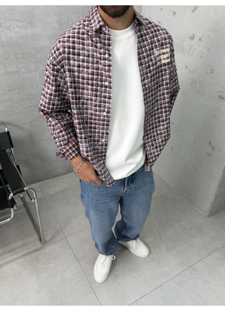 Bordo tonları ve kareli deseniyle öne çıkan bu oversize gömlek, yumuşak dokusuyla gün boyu konfor sunar. Geniş kesimi ve modern tasarımıyla kombinlerine hem rahat hem de stil sahibi bir hava katar.