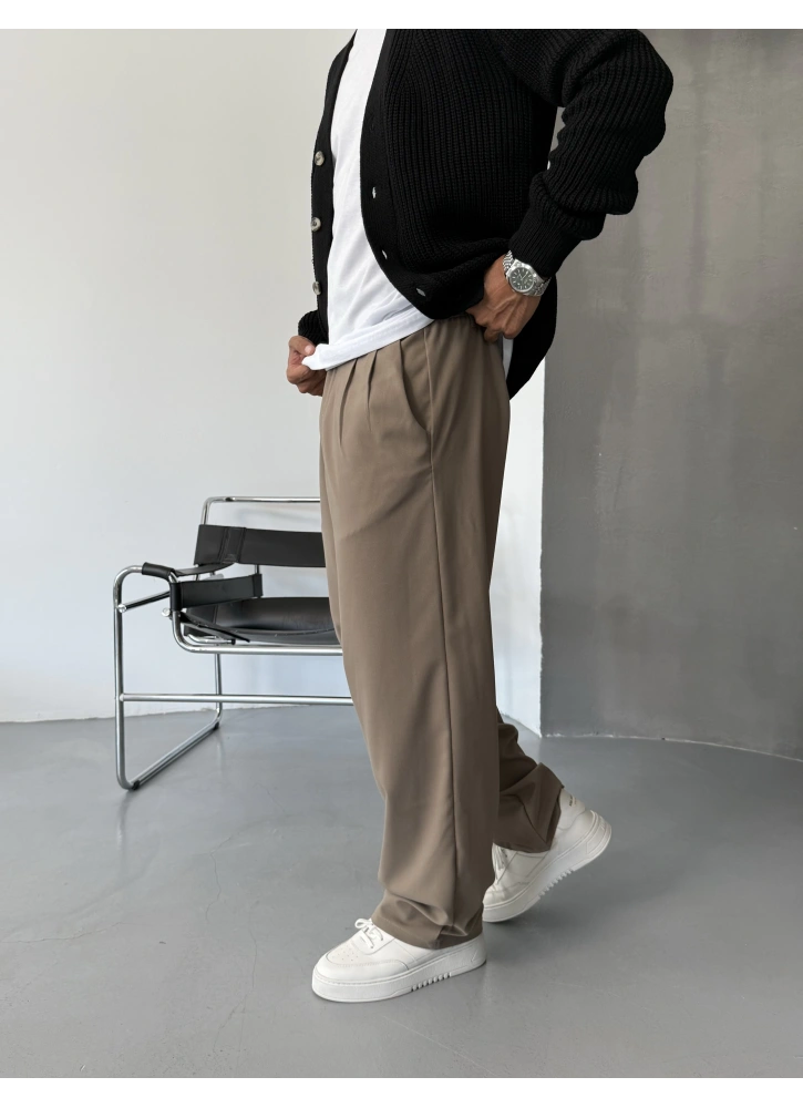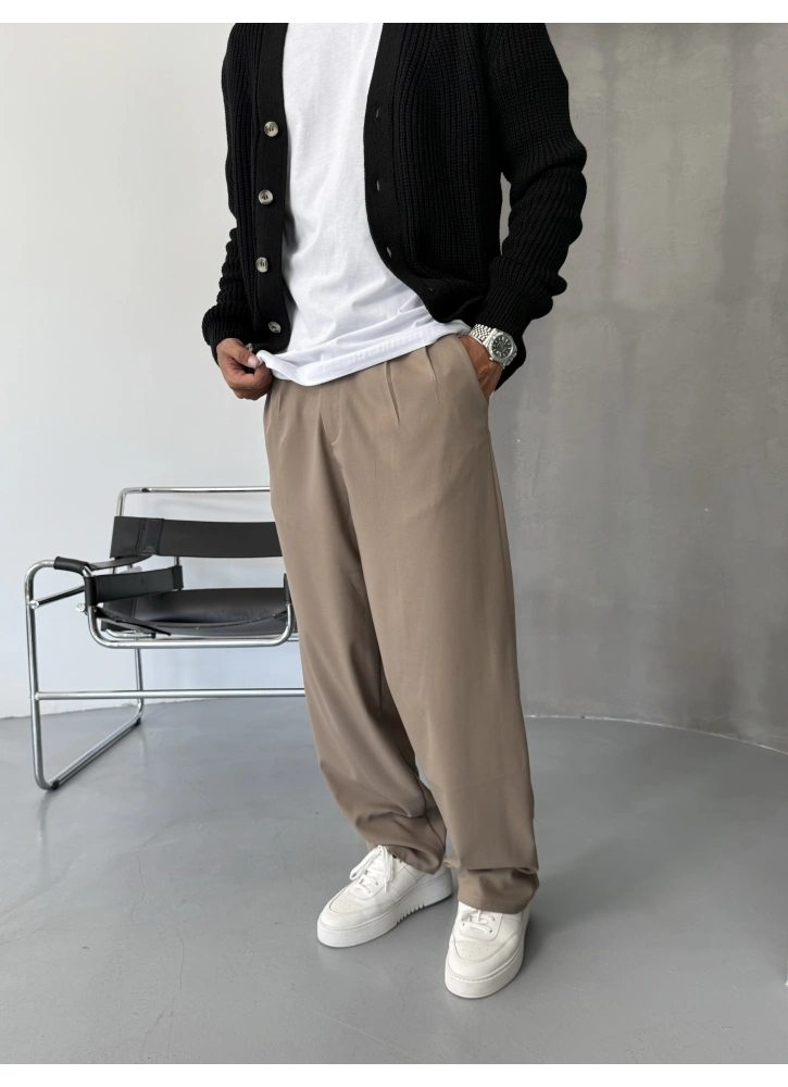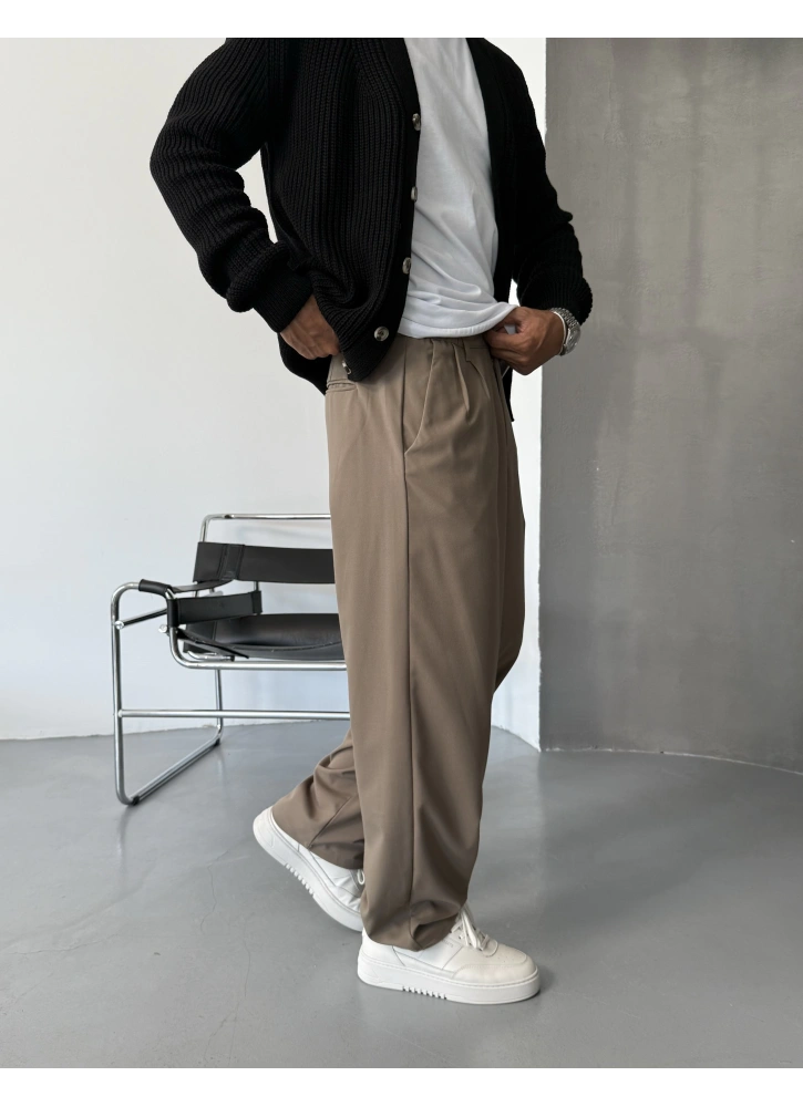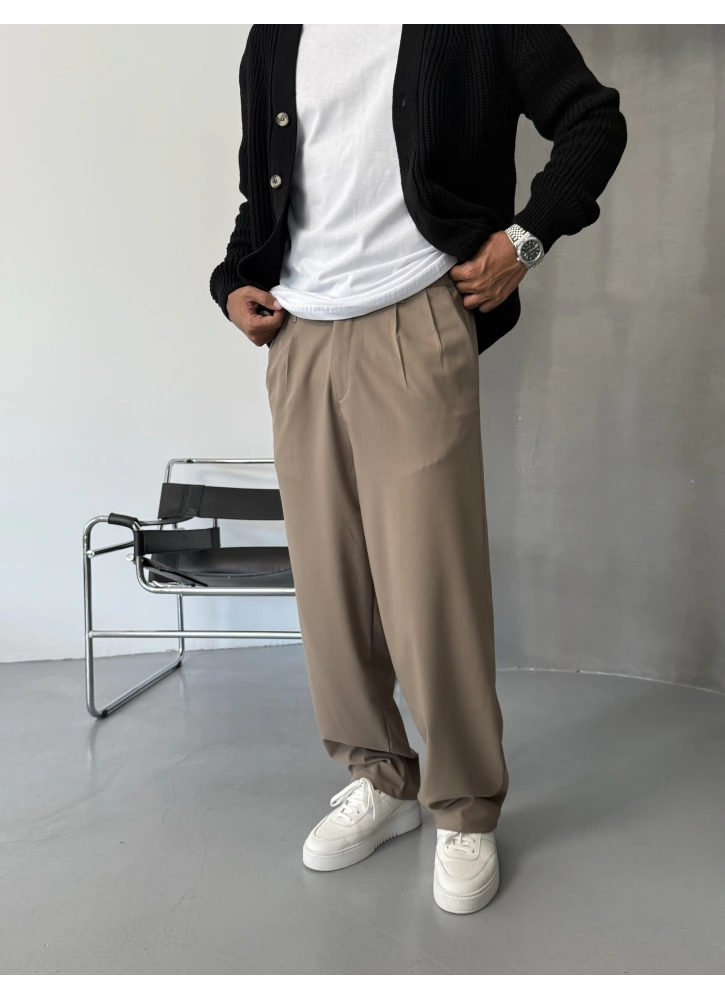 Sütlü Kahve Pileli Bol Kalıp Kumaş Baggy Hakkında