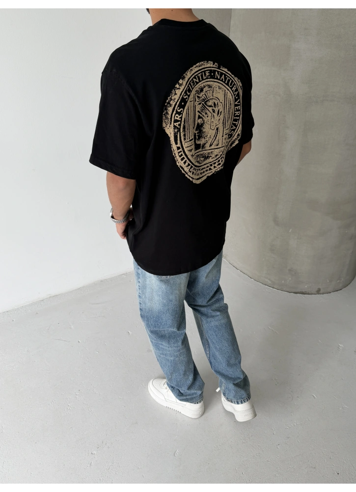 XV Siyah Baskılı Oversize T-shirt