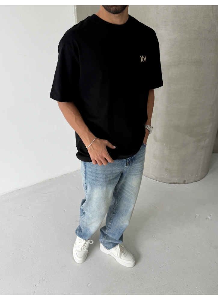 Siyah rengi ve dikkat çeken “XV” baskısıyla öne çıkan bu oversize t-shirt, geniş kesimi sayesinde gün boyu konfor sunar. Minimal ama güçlü tasarımıyla kombinlerine cool ve stil sahibi bir hava katar.