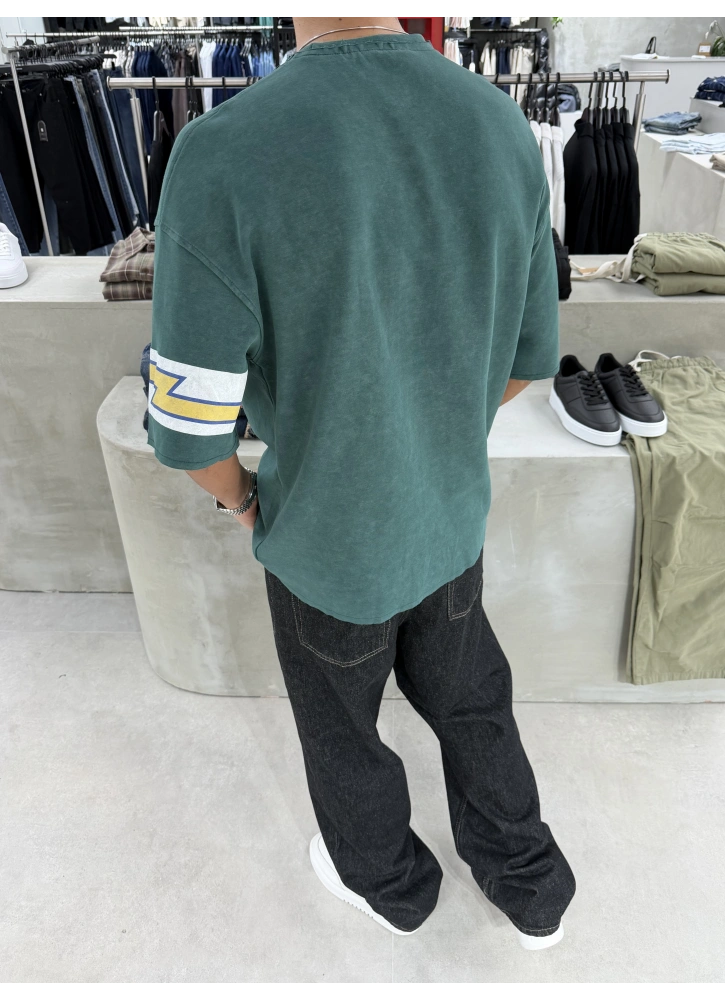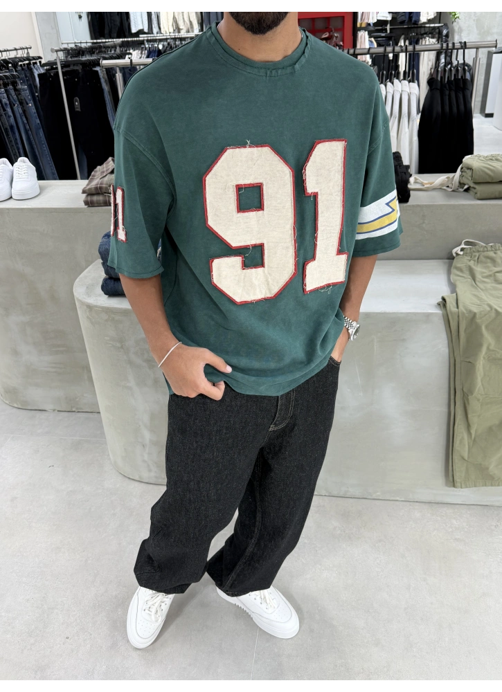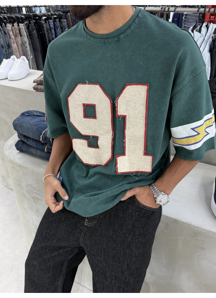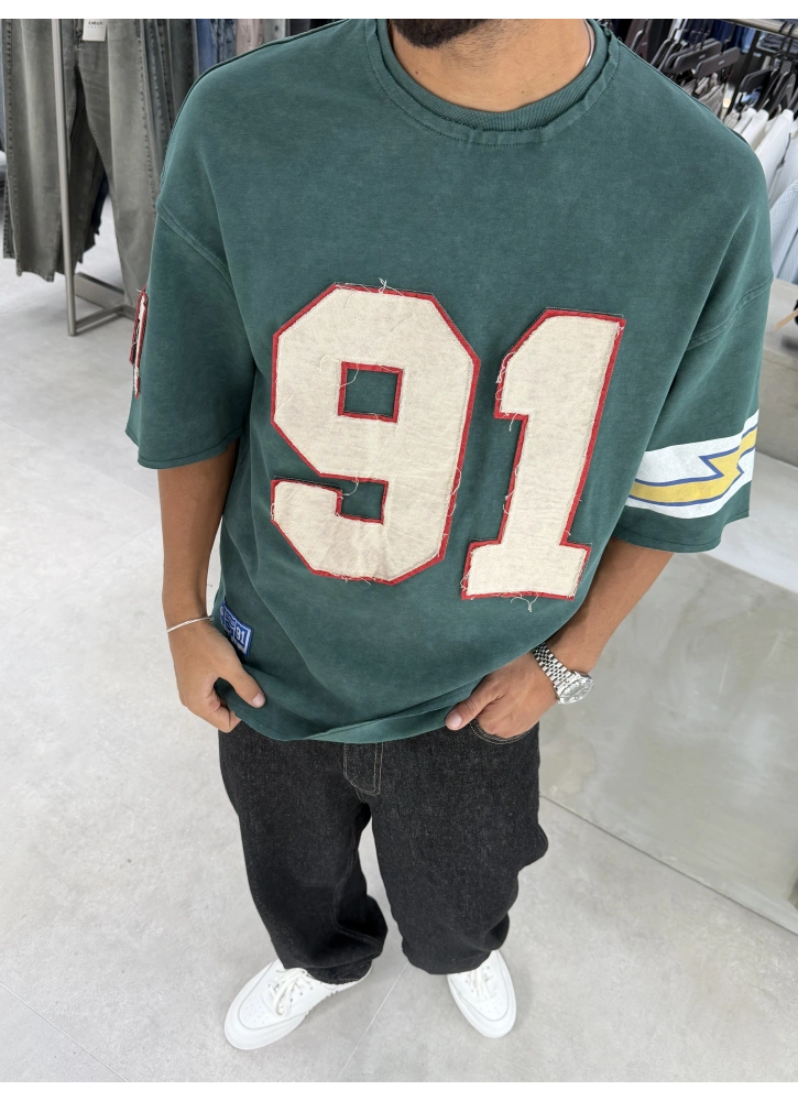 Yeşil 91 İşlemeli Yıkamalı Oversize T-Shirt Hakkında