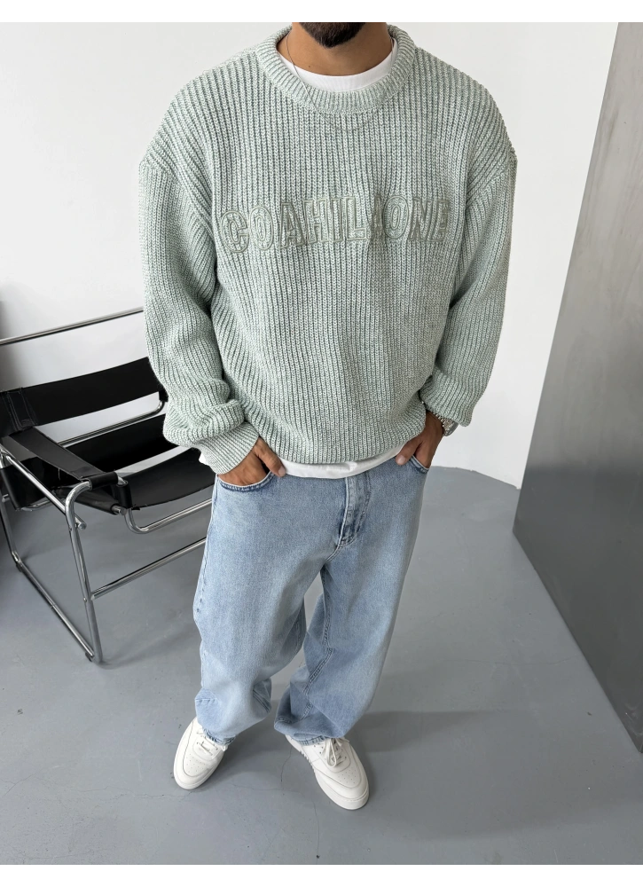 Yeşil Baskı Detay Örme Oversize Triko Kazak Hakkında