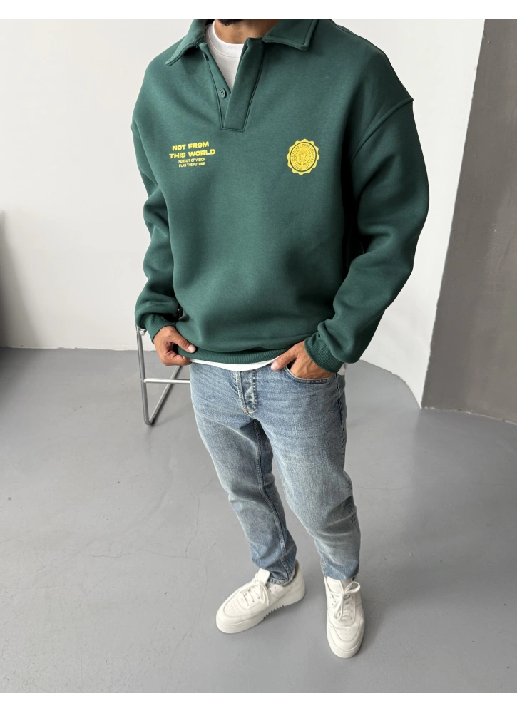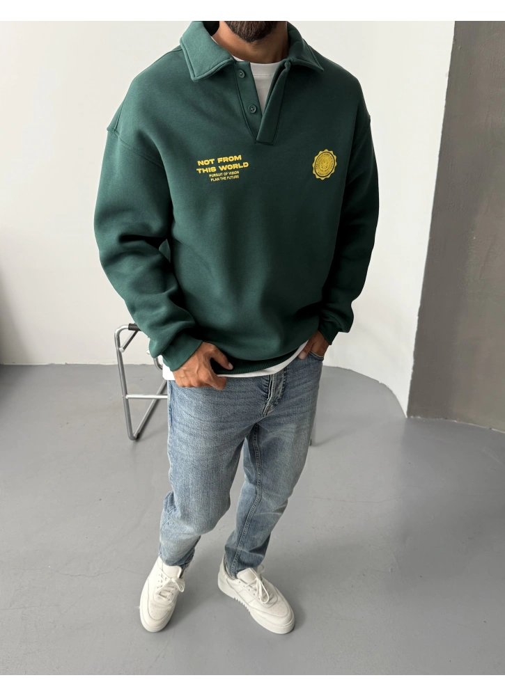Yeşil Polo Yaka Baskılı Oversize Sweat Hakkında