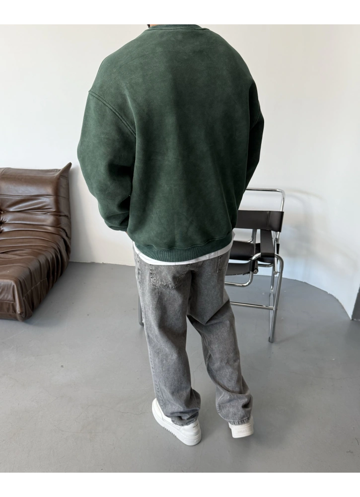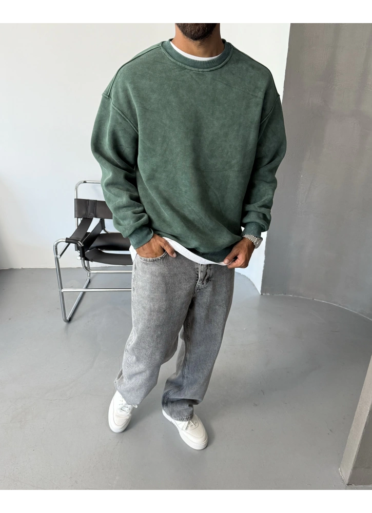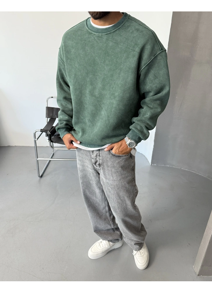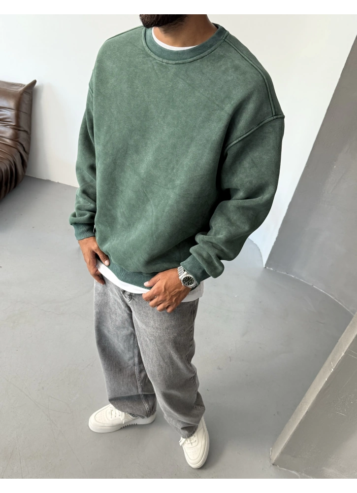 Yeşil Yıkamalı Bisiklet Yaka Oversize Sweat – Ürün Açıklaması